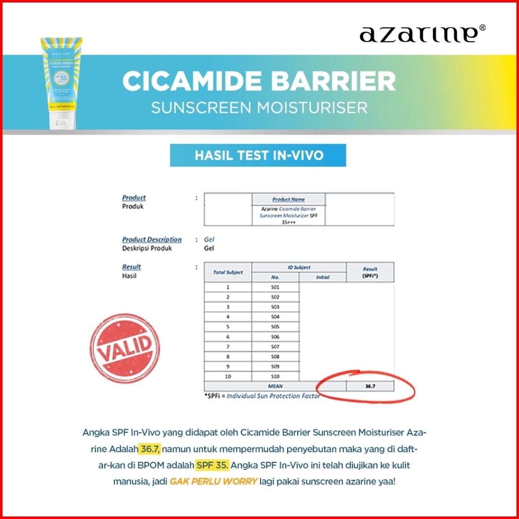 Flash Sale Azarine Cicamide Barrier Sunscreen Moisturiser Spf35 Pa Lolos Uji Invivo Invitro Sunscreen Gel Untuk Skin Bar