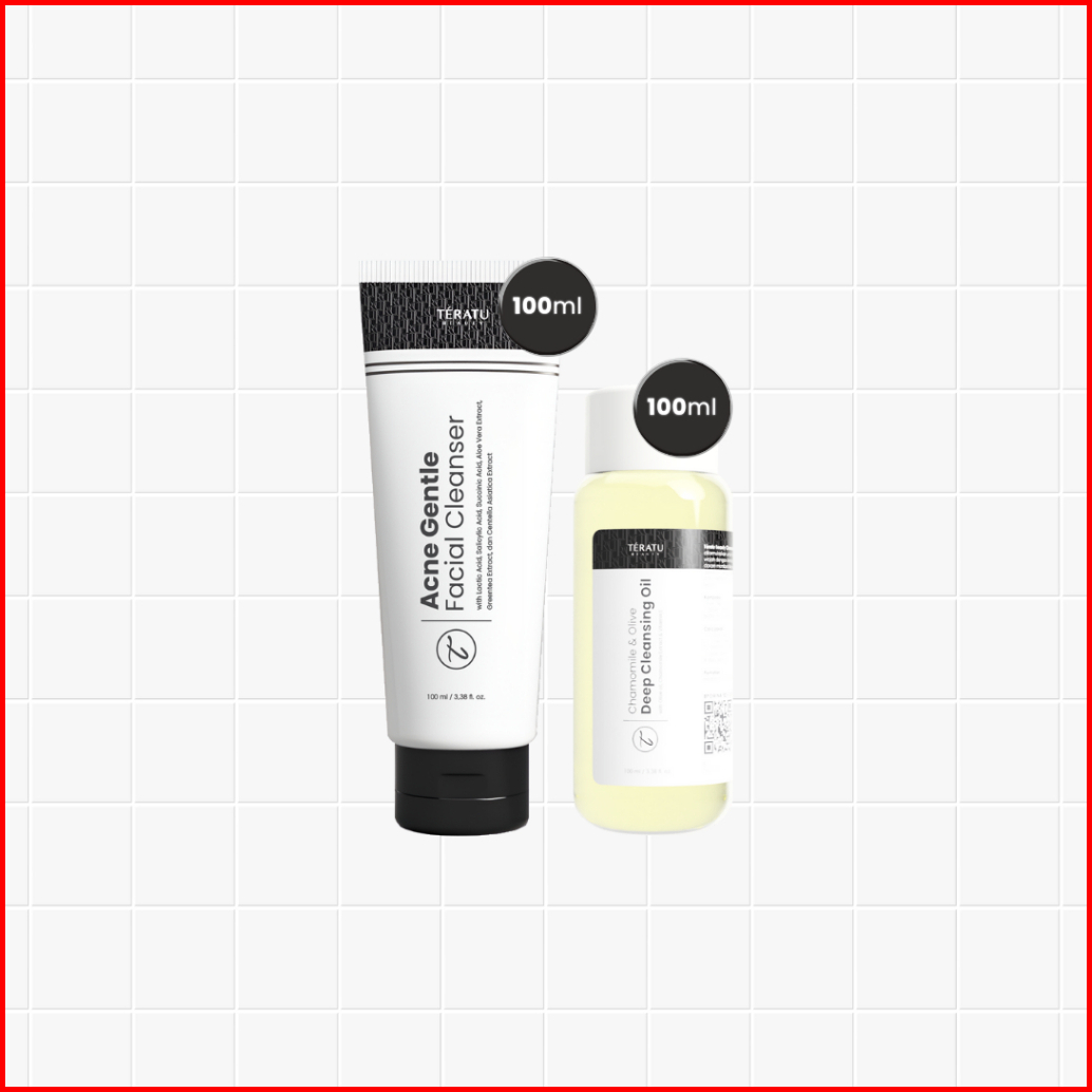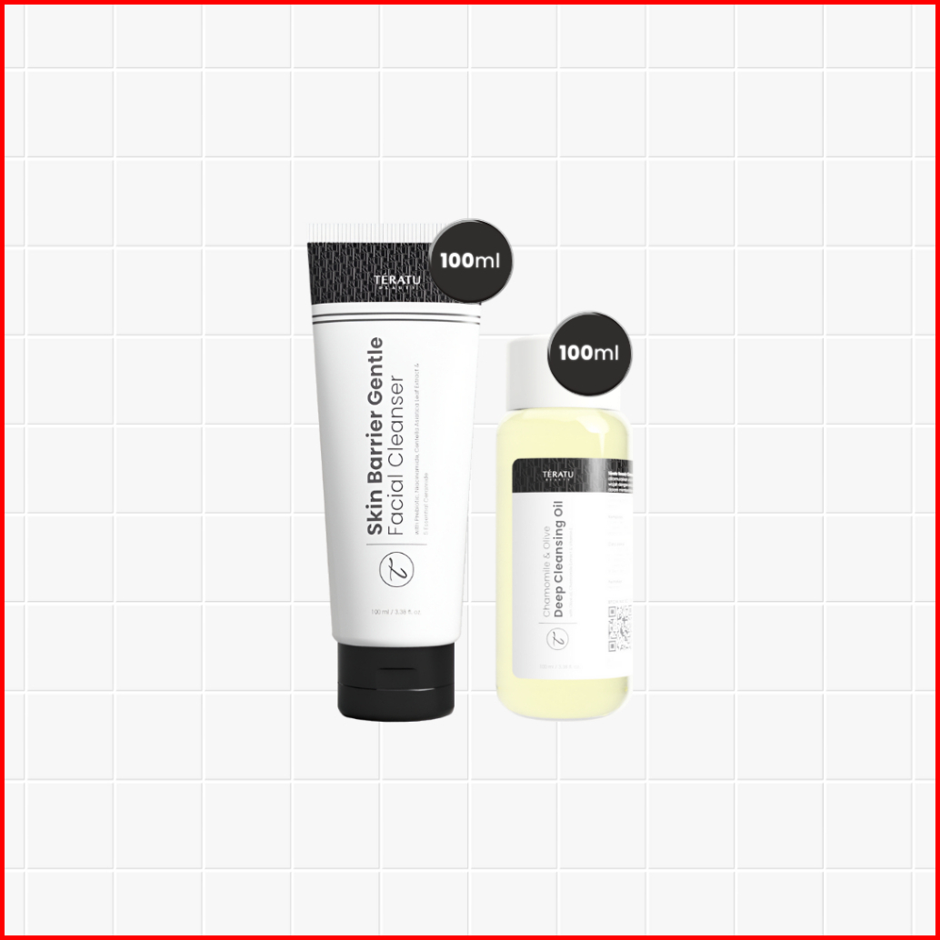 Teratu Beauty Double Cleansing Bundle Chamomile Olive Deep Cleansing Oil Acne Skin Barrier Gentle Facial Cleanser