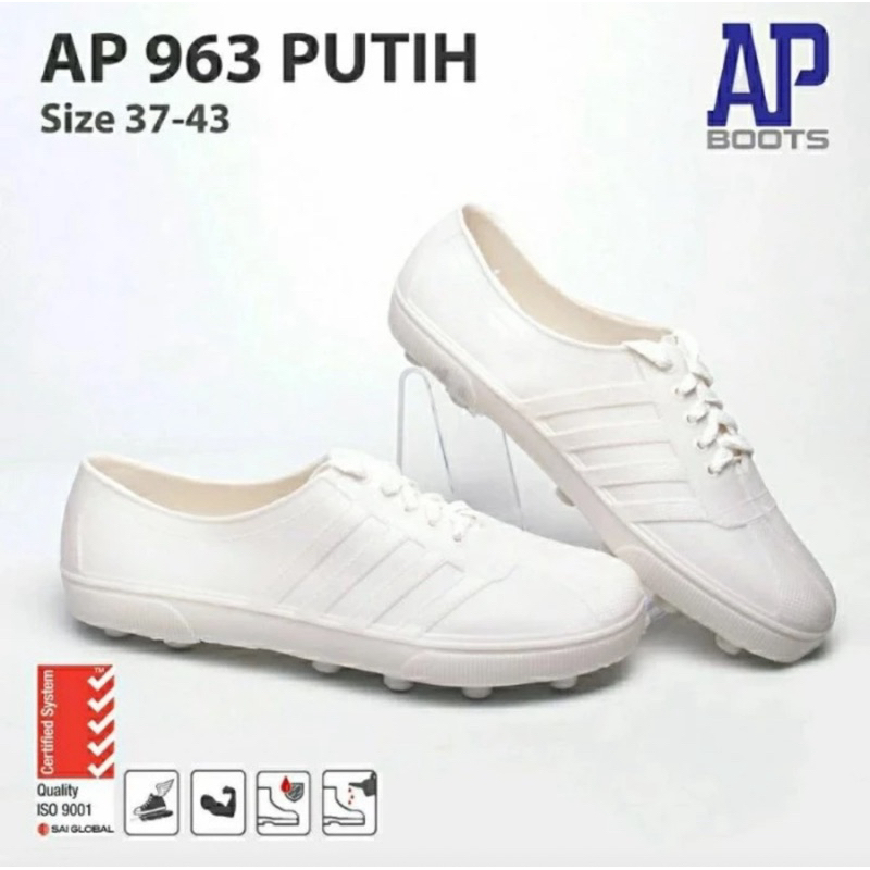 Sepatu Karet Ap 963 White Dan Warna Hitam - Sepatu Karet Bola Putih - Ap Boot || Sepatu Boot Pendek