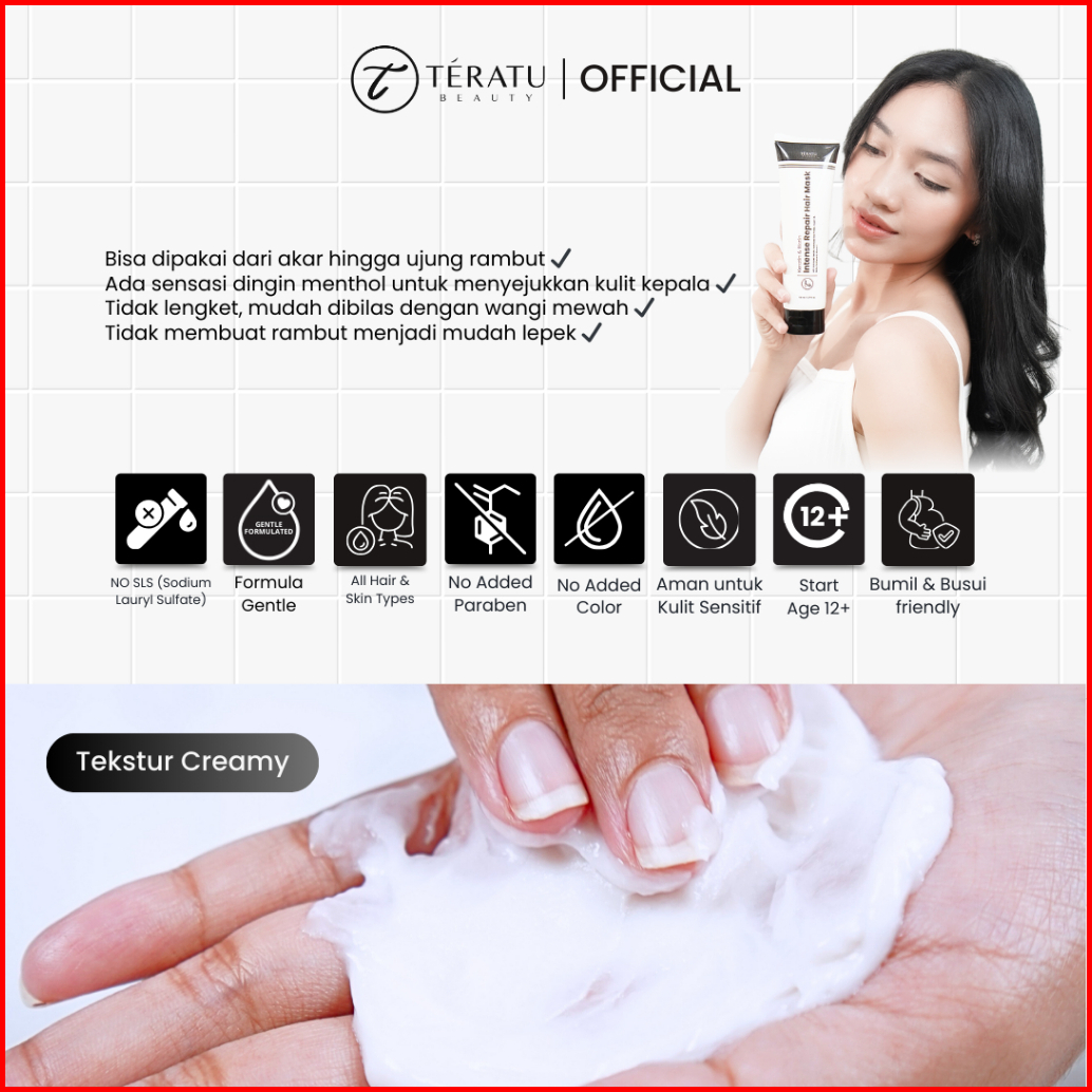 Teratu Beauty Keratin And Biotin Intense Repair Hair Mask - 150 Ml Masker Rambut Untuk Rambut Kering Dan Rusak