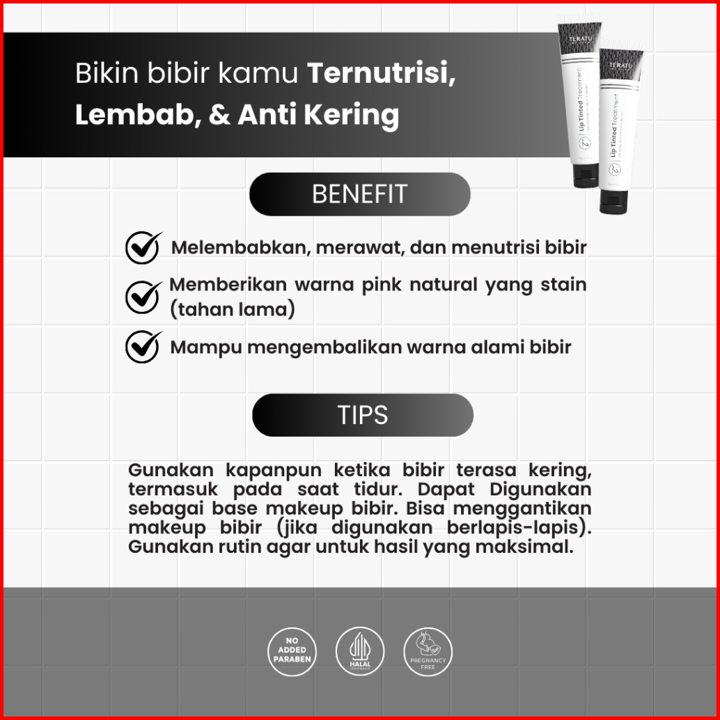 Promo Teratu Beauty Lip Tinted Treatment - 15 Gr Lip Balm Bikin Bibir Ternutrisi Lembab Anti Kering Mengembalikan Warna