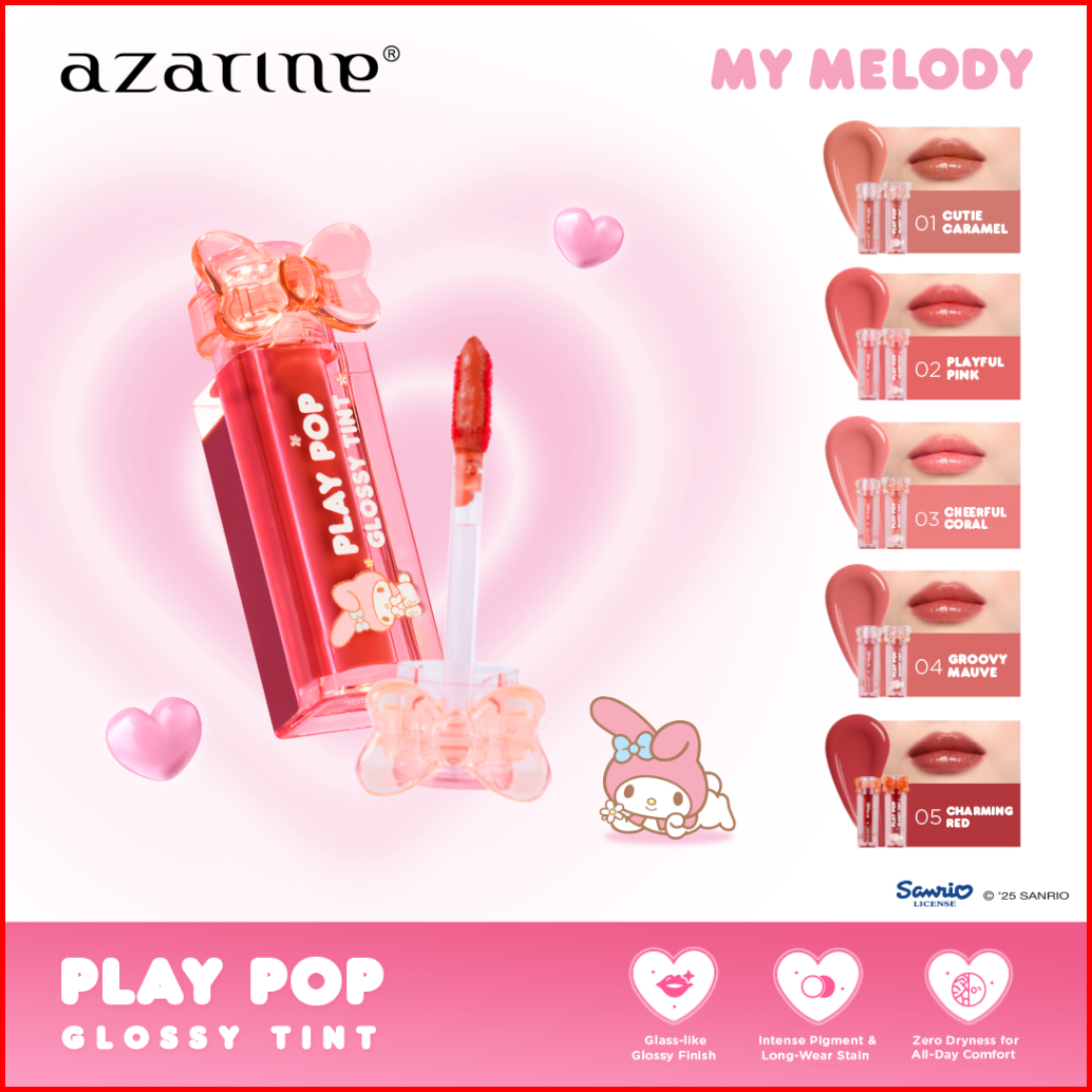 Azarine Glam Gaze 2 Pcs Paket Make Up Best Seller Play Pop Glossy Tint Liptint Glossy Tahan Lama Extra Moisturizing Deng