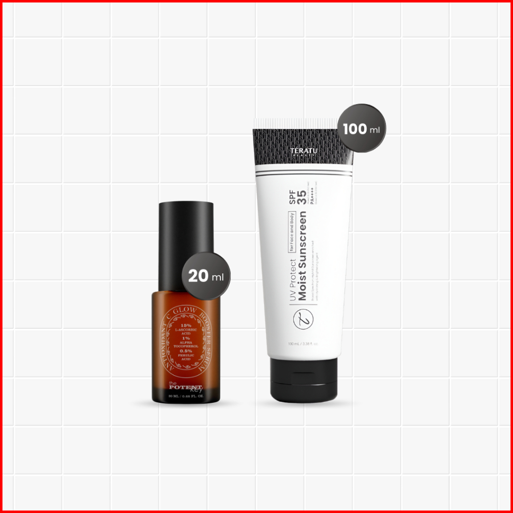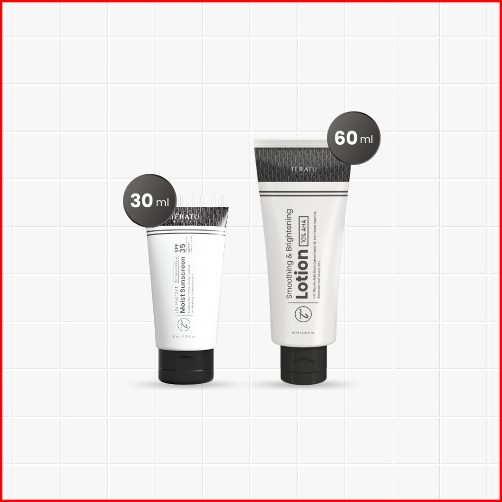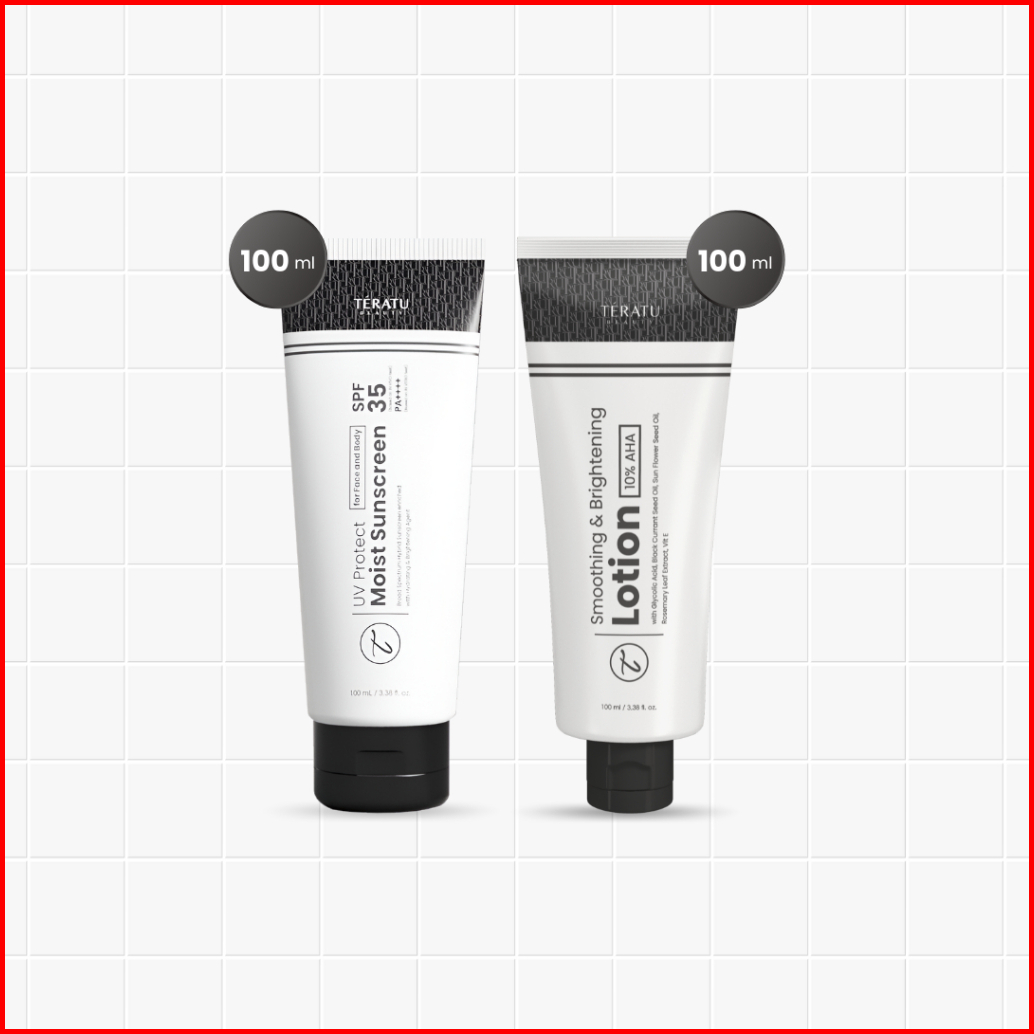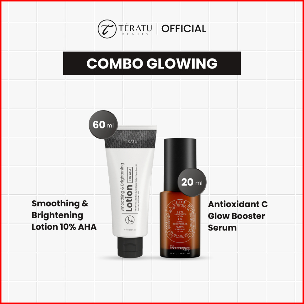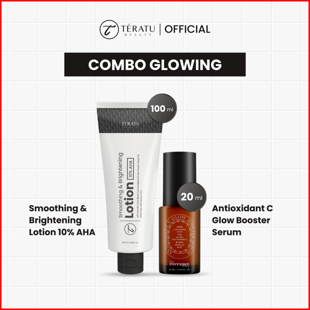 Teratu Beauty Bundling Combo Glowing Antioxidant Vit C Serum Smoothing Brightening Aha 10 Lotion Uv Protect Moist Sunscr