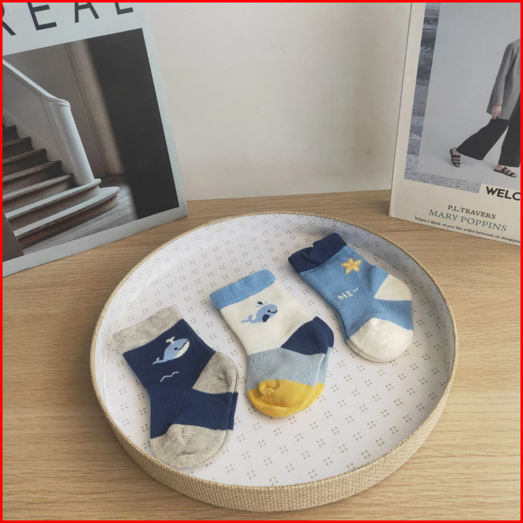 Kaos Kaki Anak My Baby Whale Fish Premium Anti Pengap Murah Set 3pcs
