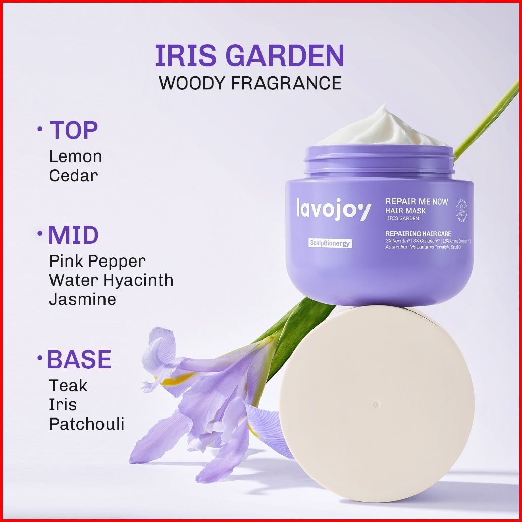 New Launch Lavojoy Repair Me Now Hair Mask Iris Garden 250ml Halus Berkilau Tanpa Lepek Multi-layering Repair With 3 Ker
