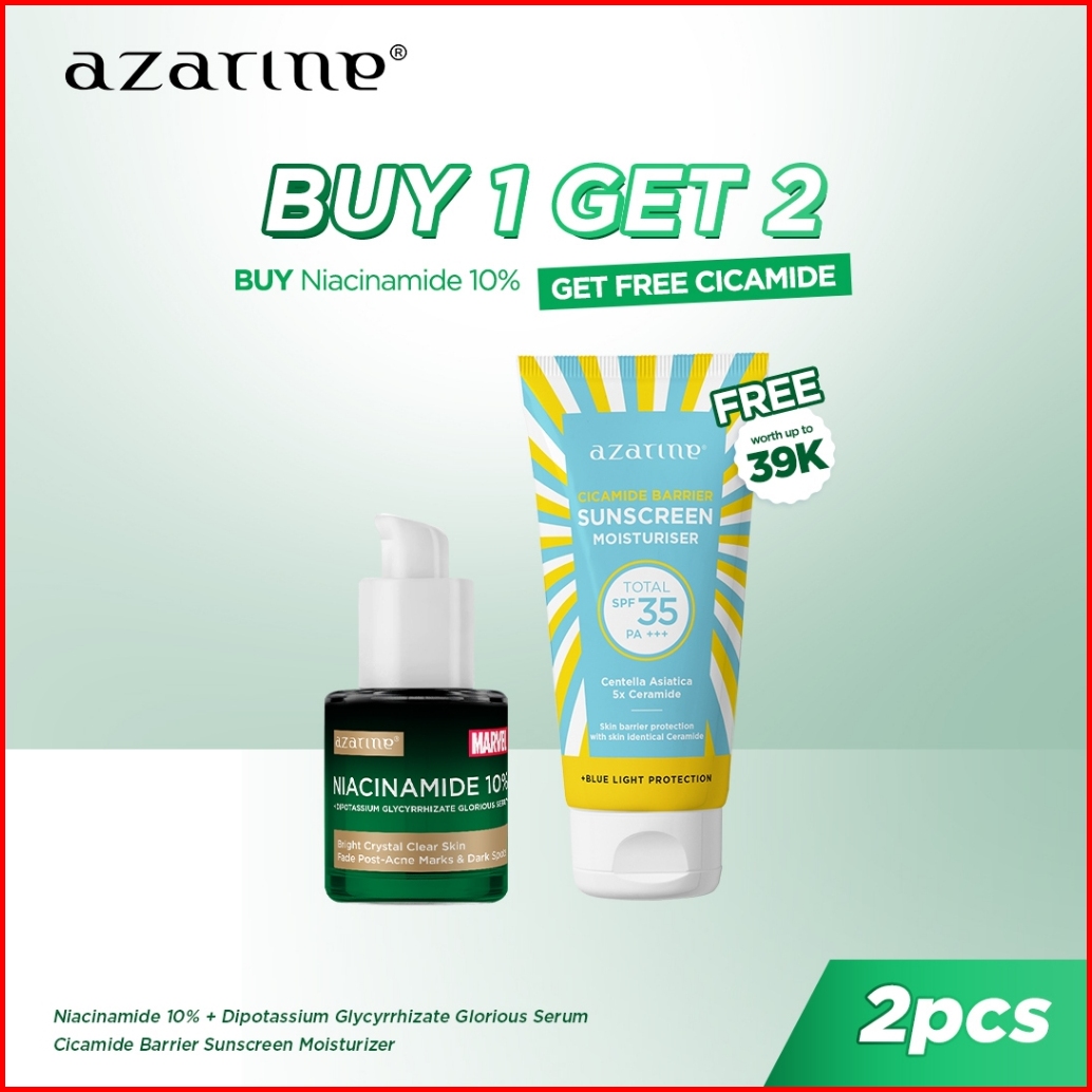 Buy 1 Get 2 Azarine Niacinamide 10 Serum Cicamide Barrier Sunscreen Moisturiser Spf35 Pa Hanya 99rb