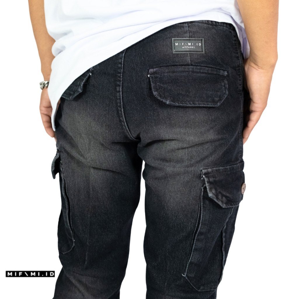 MIFAMI.ID Celana Joger Jeans Cargo Blackwash