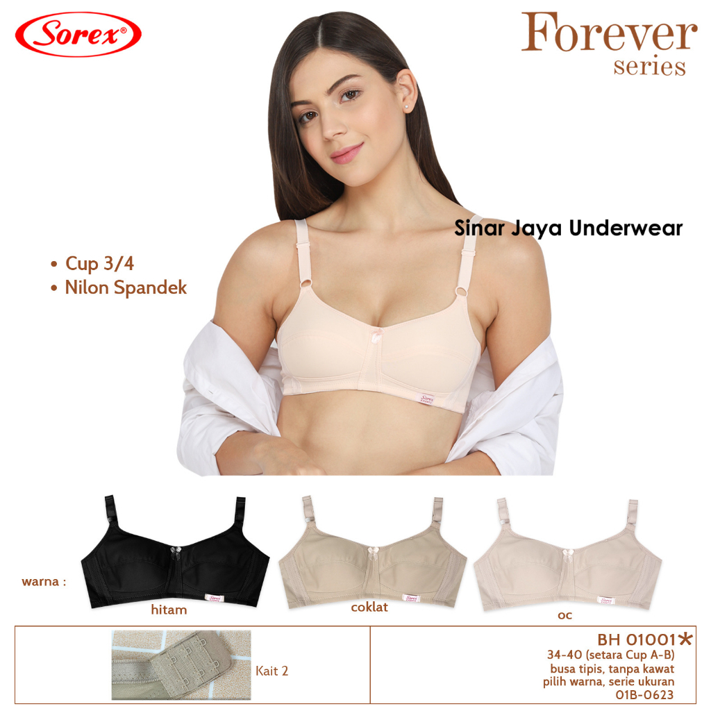 Sorex - Bra/BH Remaja Dewasa Sorex 01001, 01002, 01005 Busa Tipis, Tanpa Kawat, Cup A dan B , Kait 2