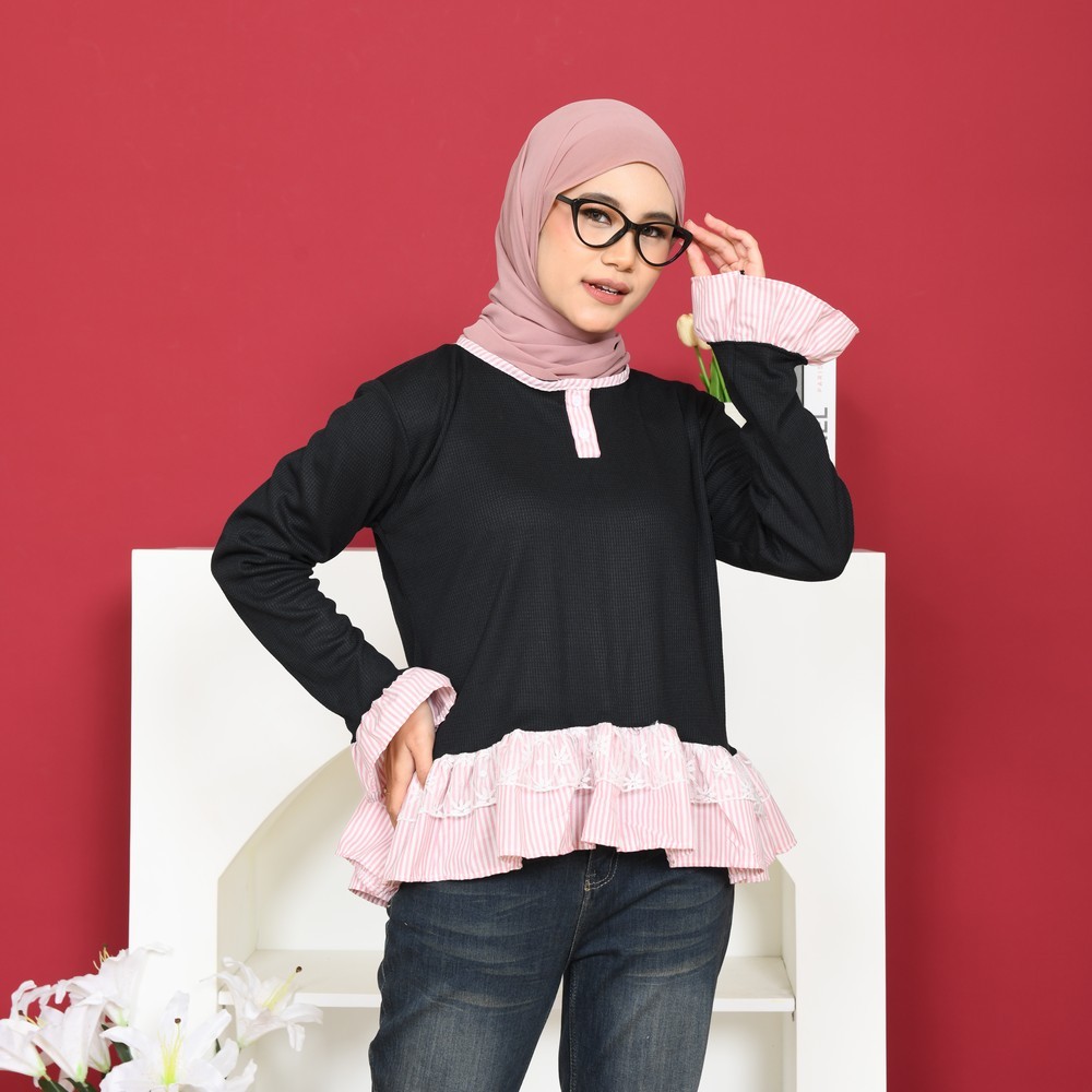 Mybamus X Listy Septia Nira Blouse Knit Tartan Umpak Kekinian