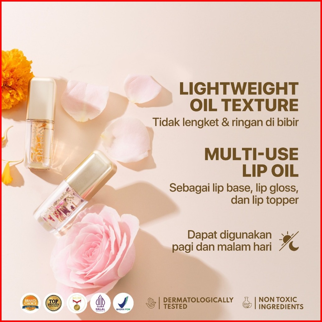 Rose Pink - Npure Power Glow Lip Oil Lip Gloss Lip Base Lip Topper Pelembab Bibir