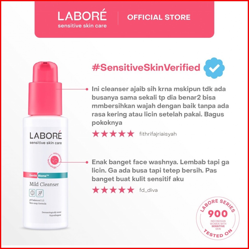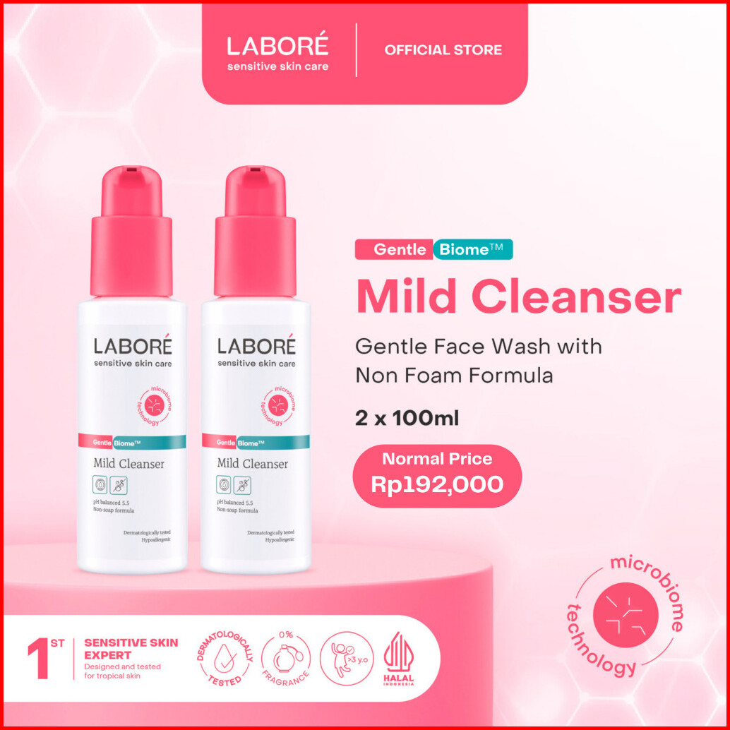 Labore Sensitive Skin Care Gentlebiome Mild Cleanser - Face Wash Twinpack 2 X 100 Ml - Paket Pembersih Wajah Untuk Kulit