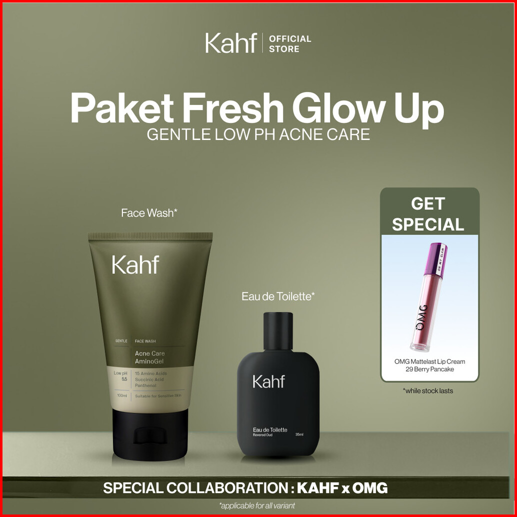 Kahf X Omg - Paket Fresh Glow Up Kahf Amino Gel Face Wash Eau De Toilette Get Mattelast Lip Cream - Suitable For Daily U