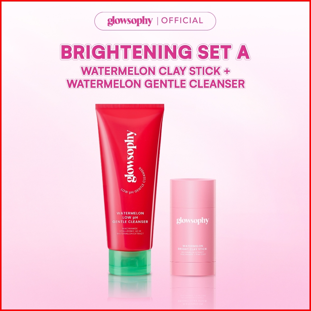 Glowsophy Bundle 2in1 Brightening Set Watermelon Bright Clay Stick Watermelon Gentle Cleanser And Watermelon Moisturizer