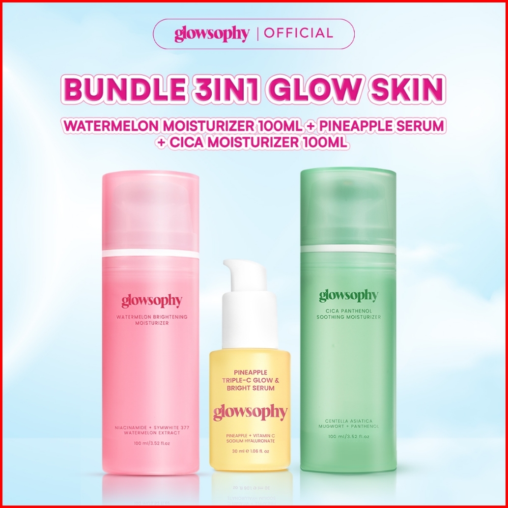 Glowsophy Bundle 3in1 Triple Glow Skin Watermelon Brightening Moisturizer 100 Ml Cica Soothing Moisturizer 100 Ml Pineap