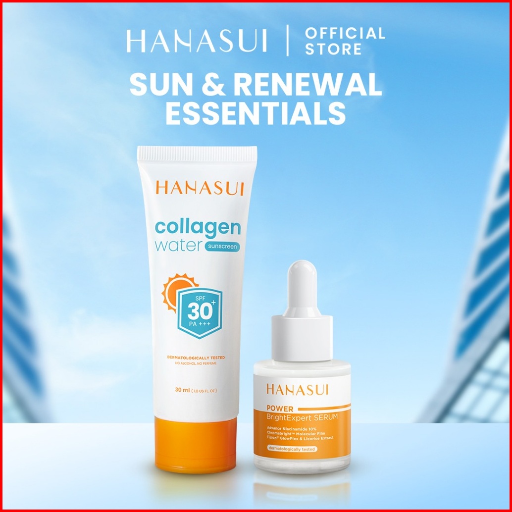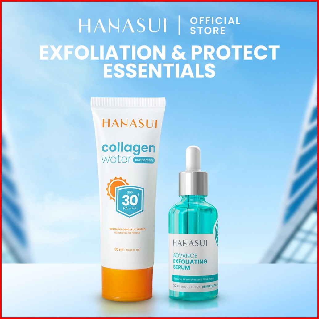 Hanasui Skincare Set Collagen Water Sunscreen Spf 30 Power Bright Expert Serum Exfoliating Serum Ceramide Probiotics Moi