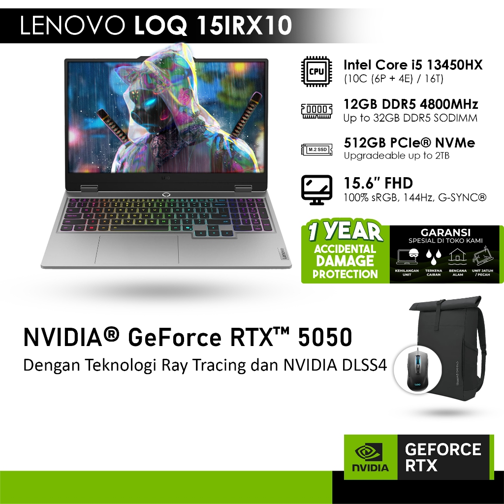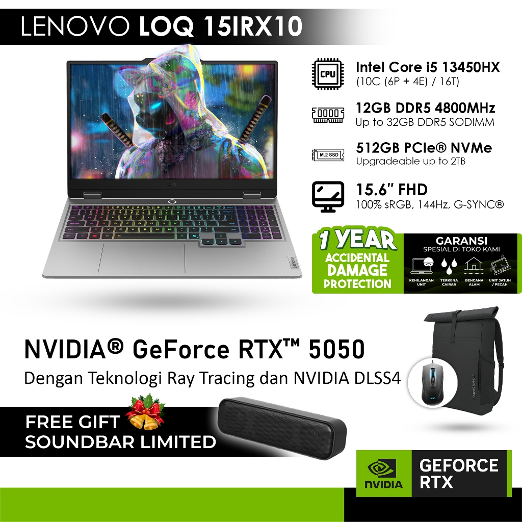 LENOVO LOQ 15IRX10 GeForce RTX™ 5050 8GB - i5 13450HX 12GB 512GB WINDOWS 11 +MICROSOFT® 365 BASIC - 52ID