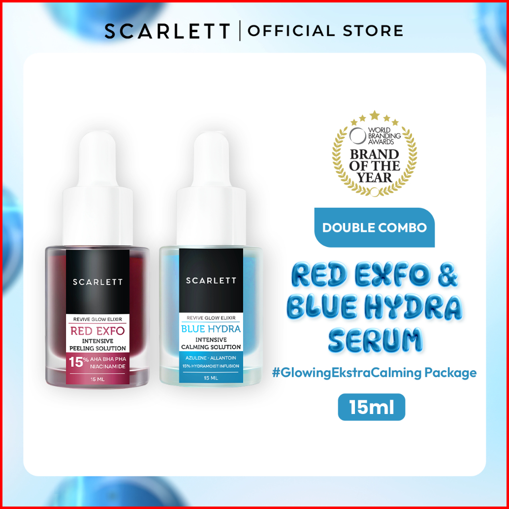 New Launch Scarlett 2pcs Bundle Red Exfo Peeling Serum Dan Blue Hydra Calming Serum Combo Mencerahkan Membuat Kulit Glow