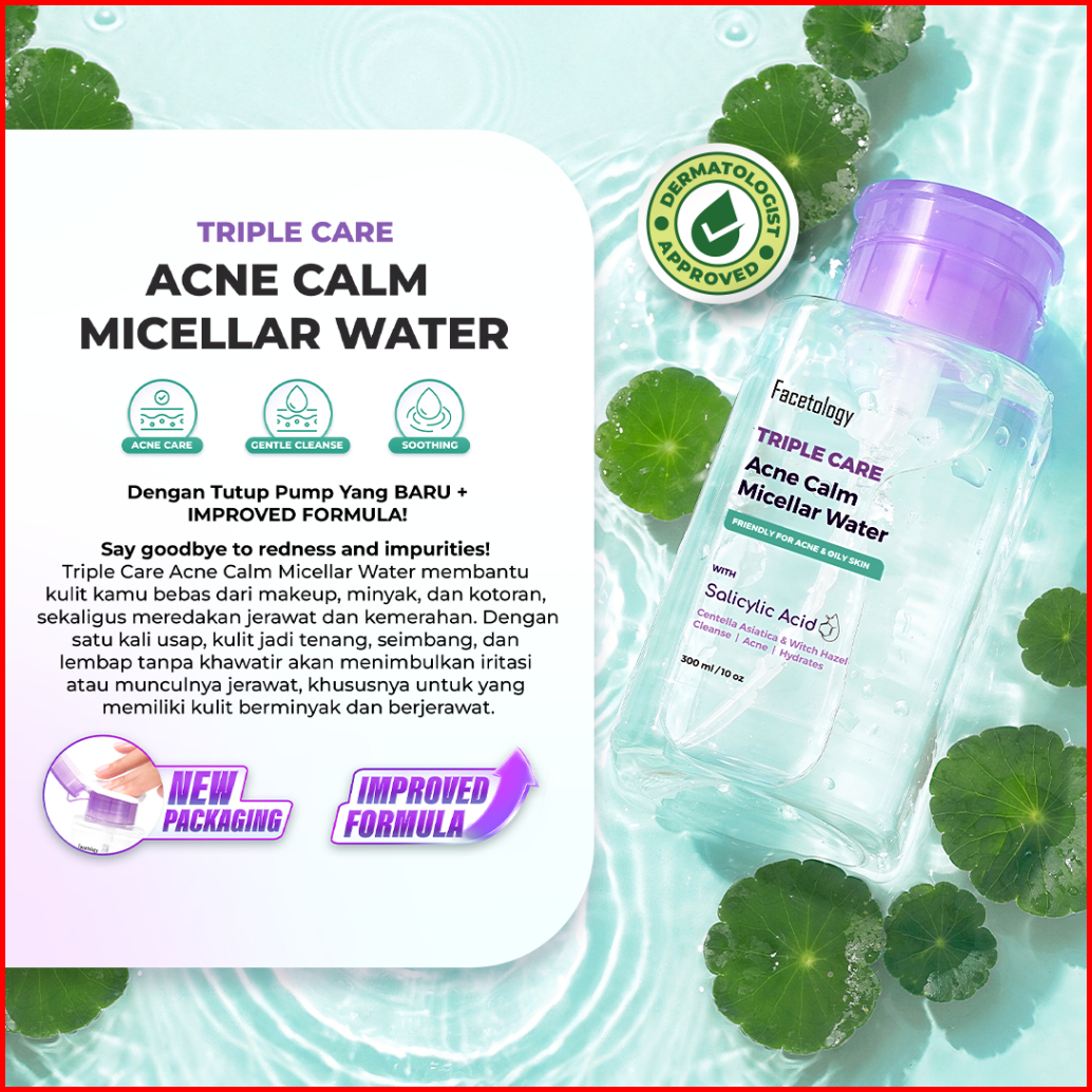 Facetology Bundling Triple Care Sunscreen For Acne Oily Skin Spf 40 Pa 40ml Triple Care Acne Calm Micellar Water 100ml