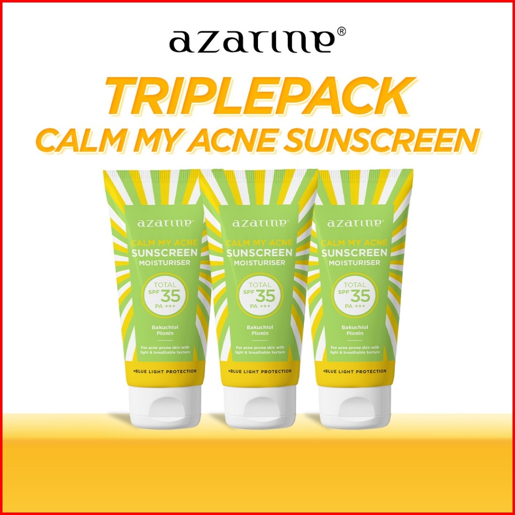 3 Pcs Azarine Triplepack Calm My Acne Sunscreen 3 Pcs Cicamide Barrier Sunscreen Moisturizer Spf35 Pa Lulus Uji Invivo I
