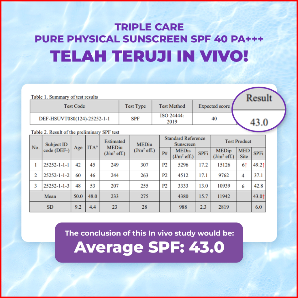 Twinpack Facetology Triple Care Pure Physical Sunscreen Spf 40 Pa 100 Persen Mineral Sunscreen Tabir Surya Bantu Proteks