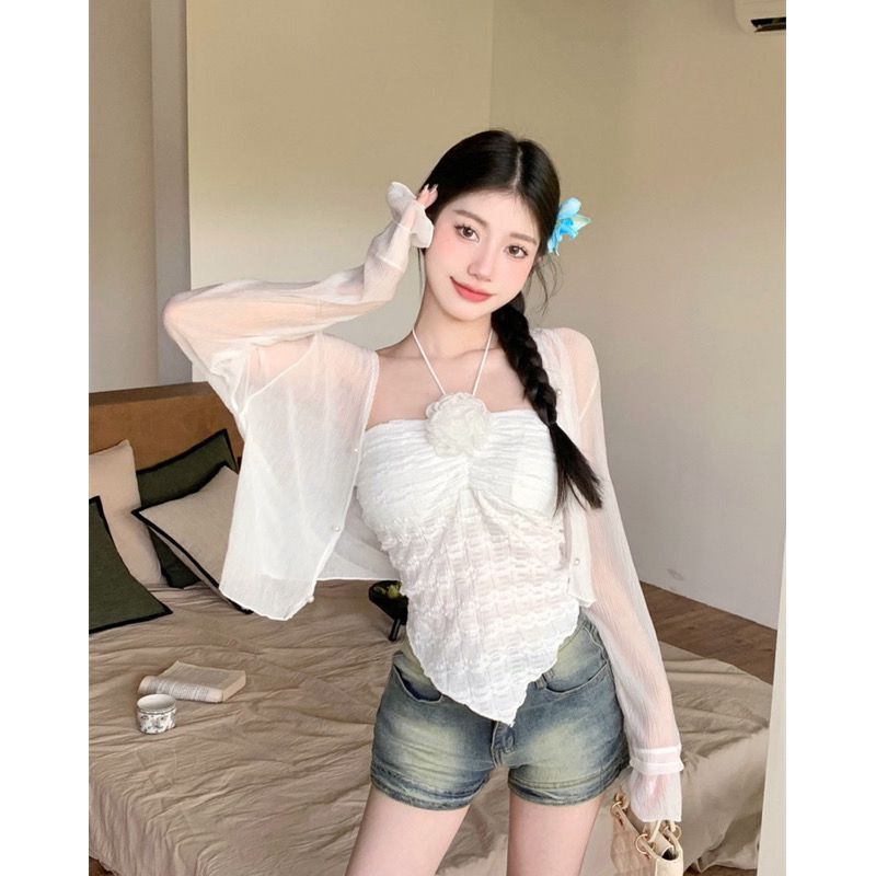 Lingerie Master] - (-131) Tanktop Korean Lace Wanita Premium Motif Bunga Gaya Korea