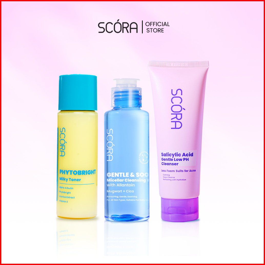Scora Toner 80 Ml Scora Gentle Low Ph Cleanser 100 Ml Gentle Soothe Micellar Cleansing Water 100 Ml