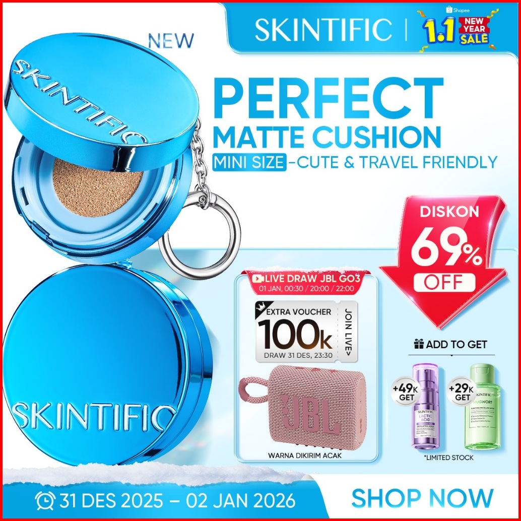 New Launch Skintific -mini Size Perfect Stay Velvet Matte Cushion 4g Travel Friendly Matte Finish Cocok Untuk Kulit Berm