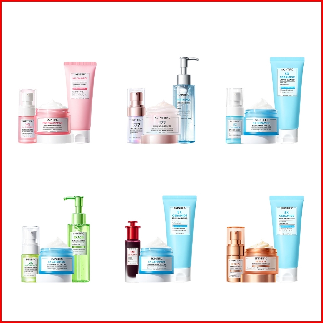 Skintific-3pcs Paket-skincare Set Serum Moisturizer Gel Cleanser Day Night Cream Acner Glowing Barrie Anti-aging Exfolia