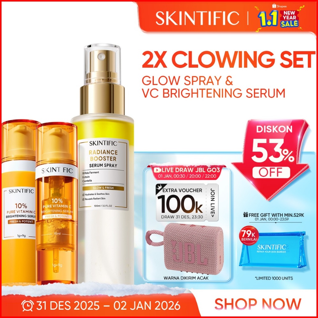Skintific - 2pcs 2x Glowing Set Glow Spray 10 Vitamin C Serum Brightening Day Night Brightening Kulit Cerah Combo