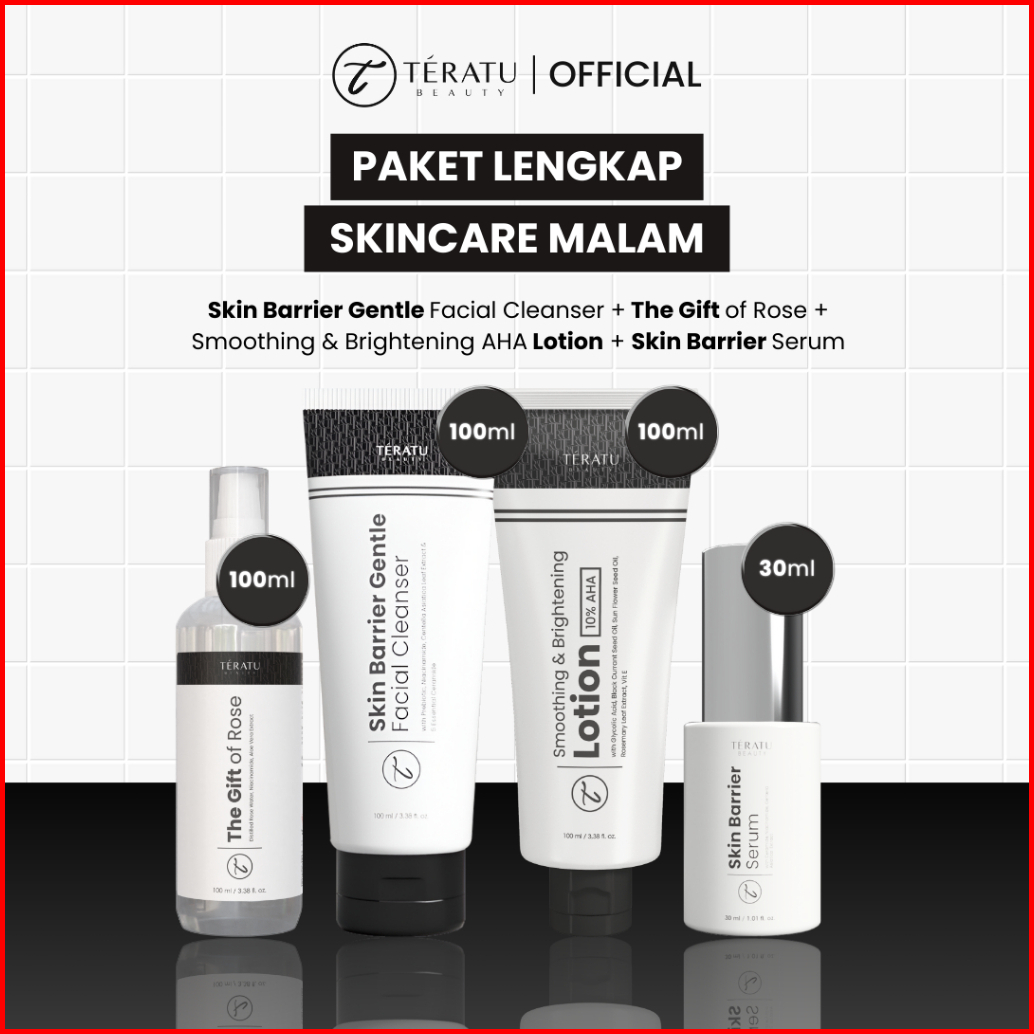 Teratu Beauty Paket Lengkap Skincare Malam Skin Barrier Gentle Facial Cleanser 100 Ml The Gift Of Rose 100 Ml Smoothing