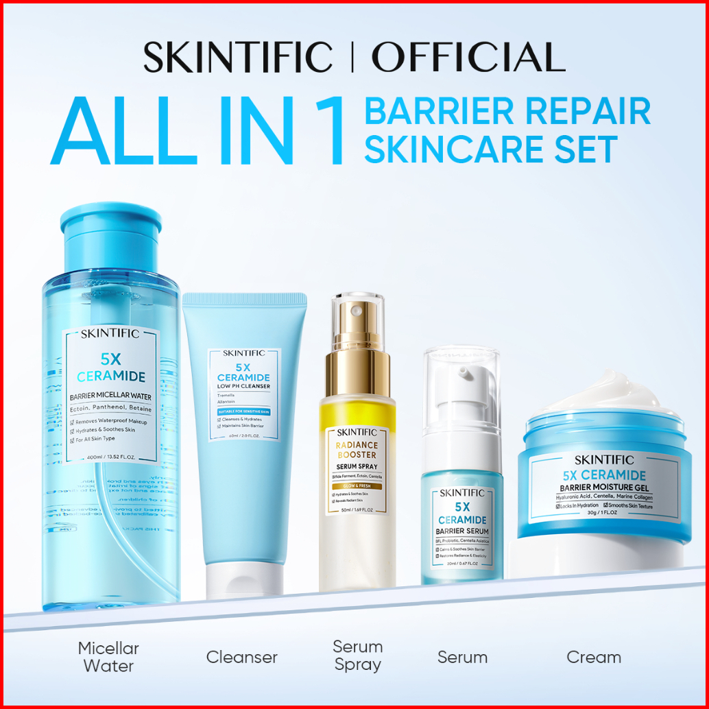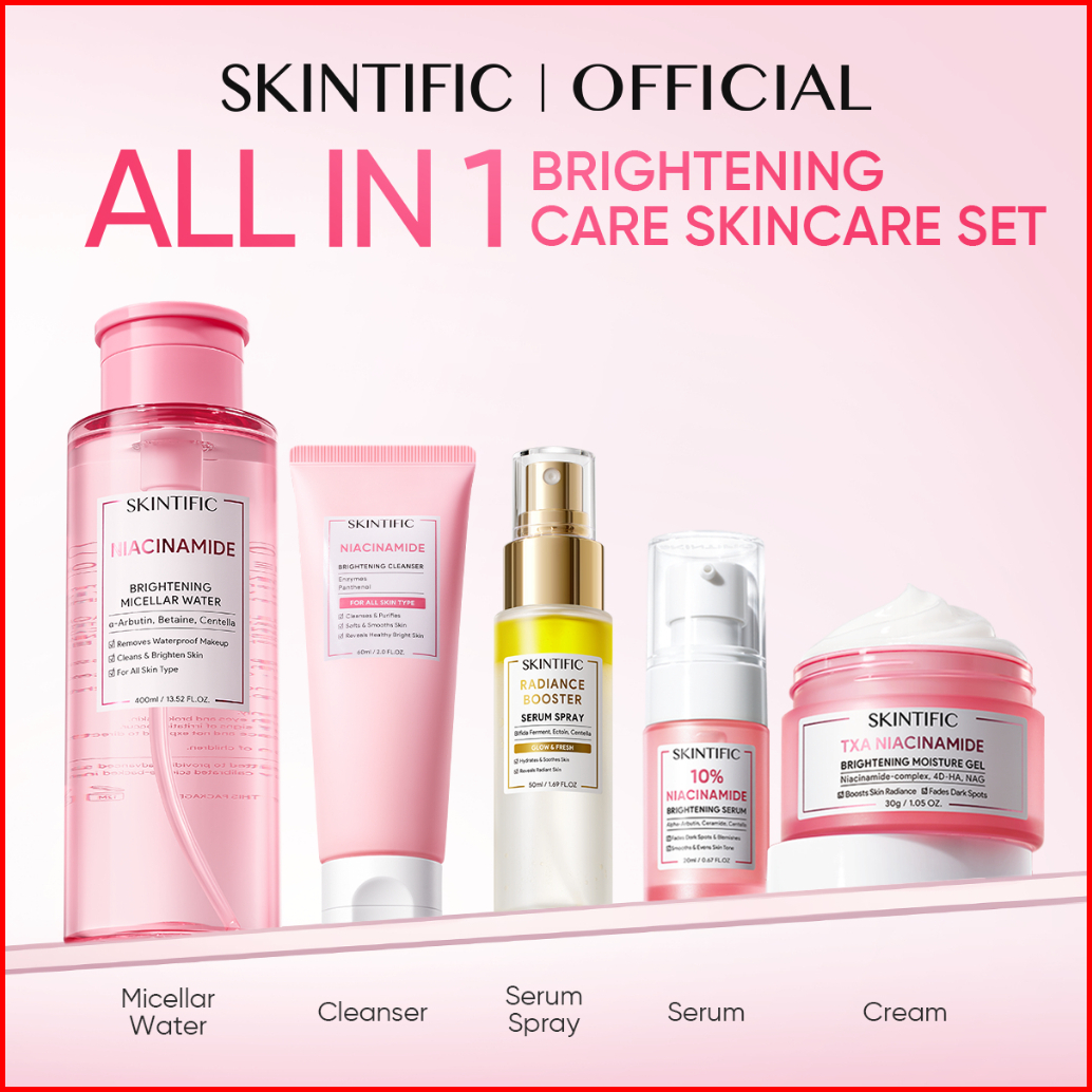 5pc Skintific Brightening Repair Skincare Set - Cleansing Oil Facial Wash Serum Spray Serum Cream - Paket Perawatan Waja