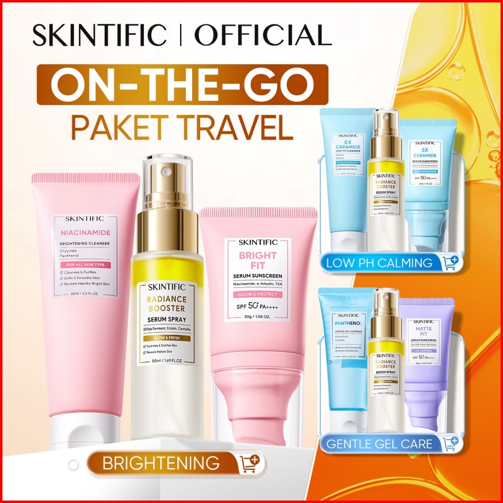 Skintific - 3pcs On-the-go Travel Skincare Set Cleanser Serum Spray Sunscreen Barrier Repair Brightening Oil-control Gen