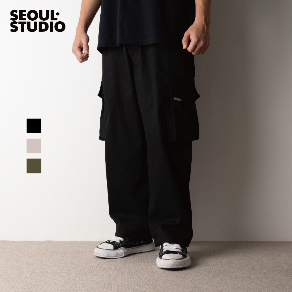 [SEOULSTUDIO] HONGDAE Cargo Panjang | Banding Gombrong Baggy Loose Pants Celana Cewek Cowok