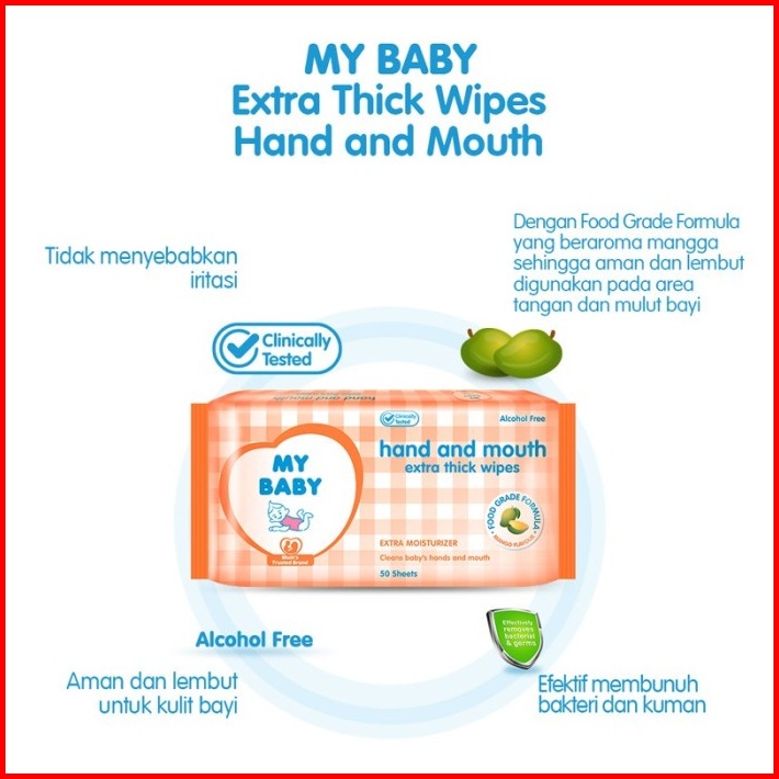 My Baby Extra Care Wipes Hand Mouth 50 50 Sheets - Tisu Basah