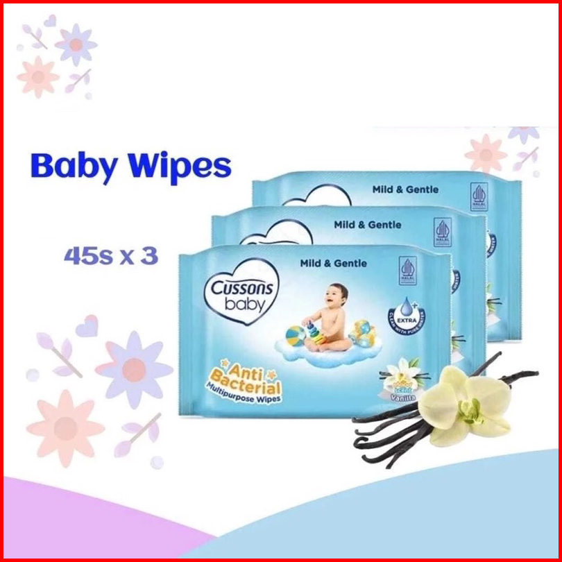 Tisu Basah Cussons Baby Isi 45 Sheet X 3 Pack