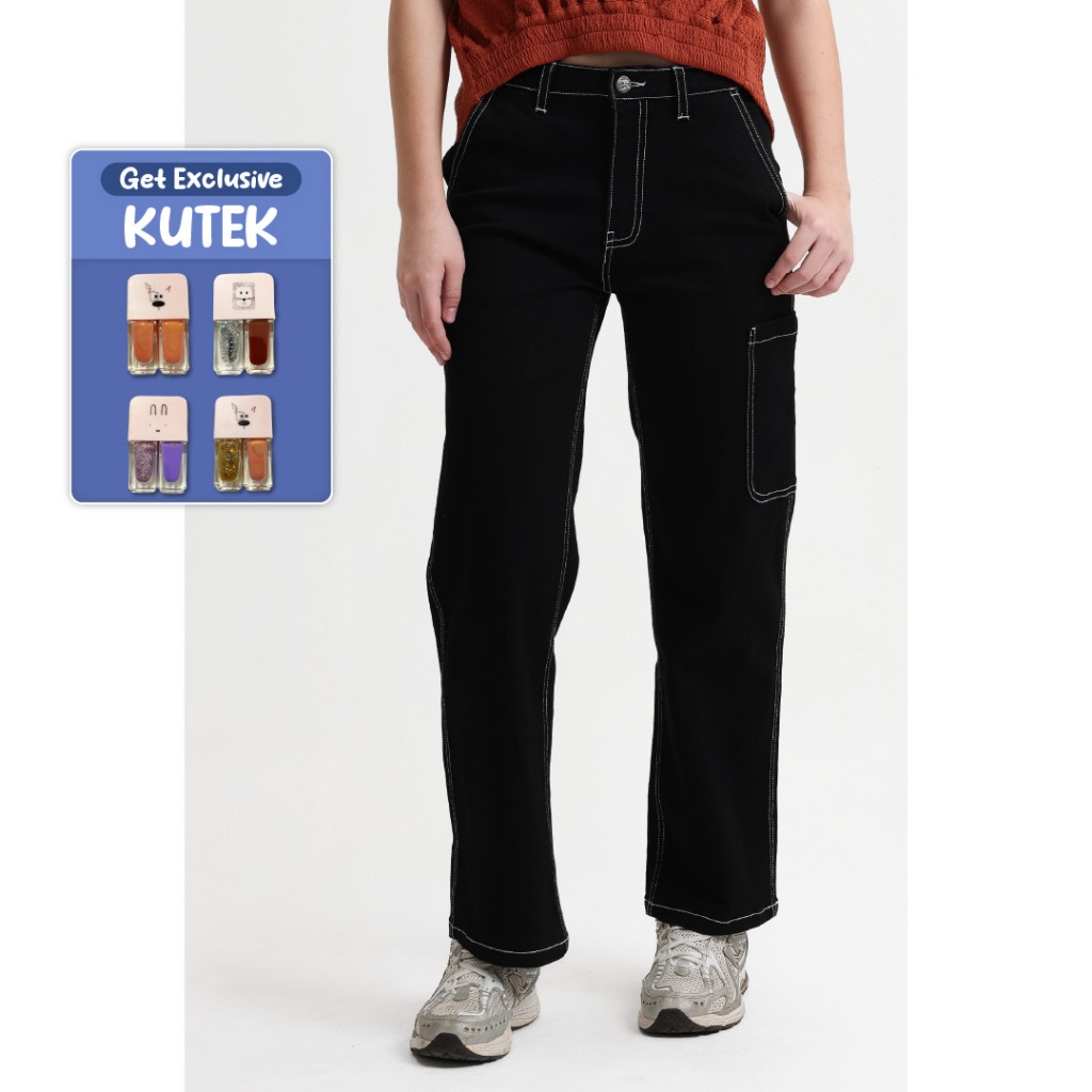 Emba Ladies - Evonie Celana Cargo Jeans Wanita Warna Hitam