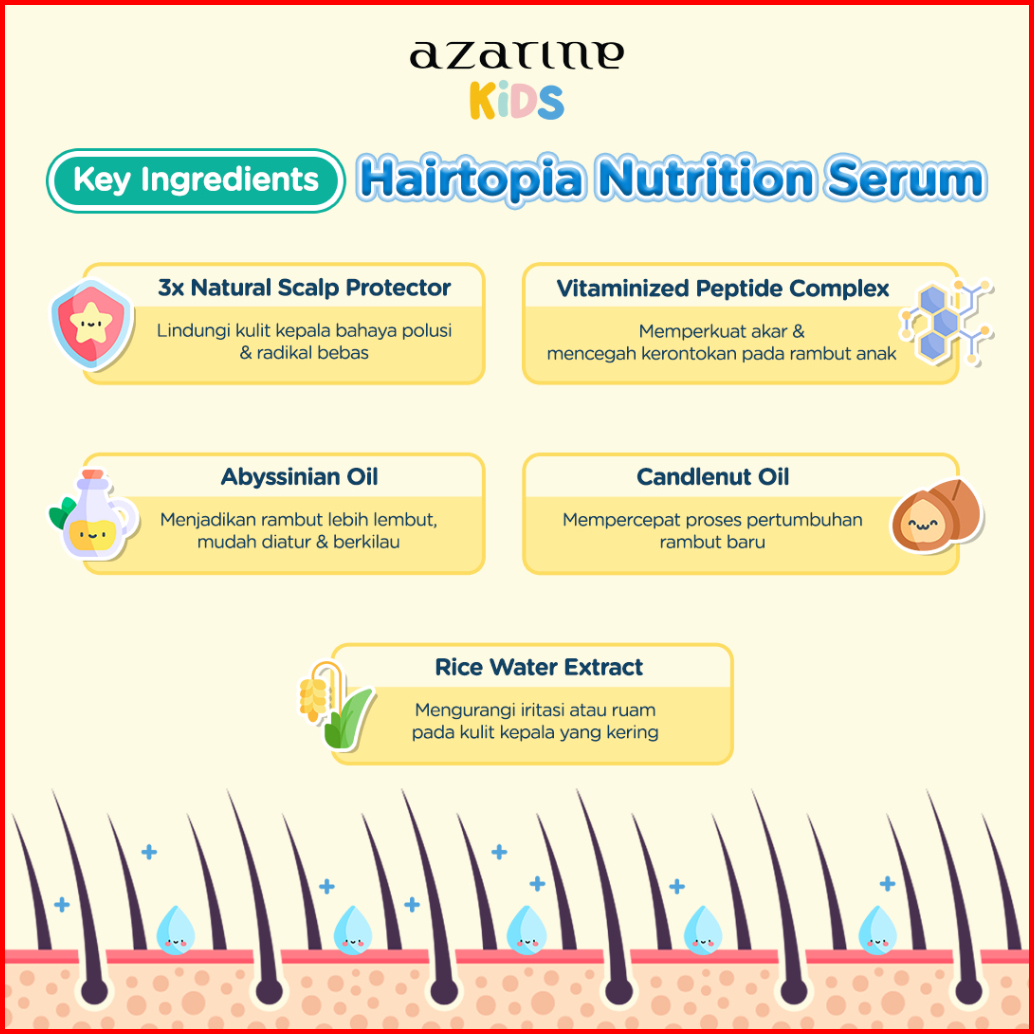 Azarine Kids Hairtopia Nutrition Serum 100ml With 3in1 Benefits Serum Penumbuh Rambut Bayi Anak Paraben Free Tidak Perih