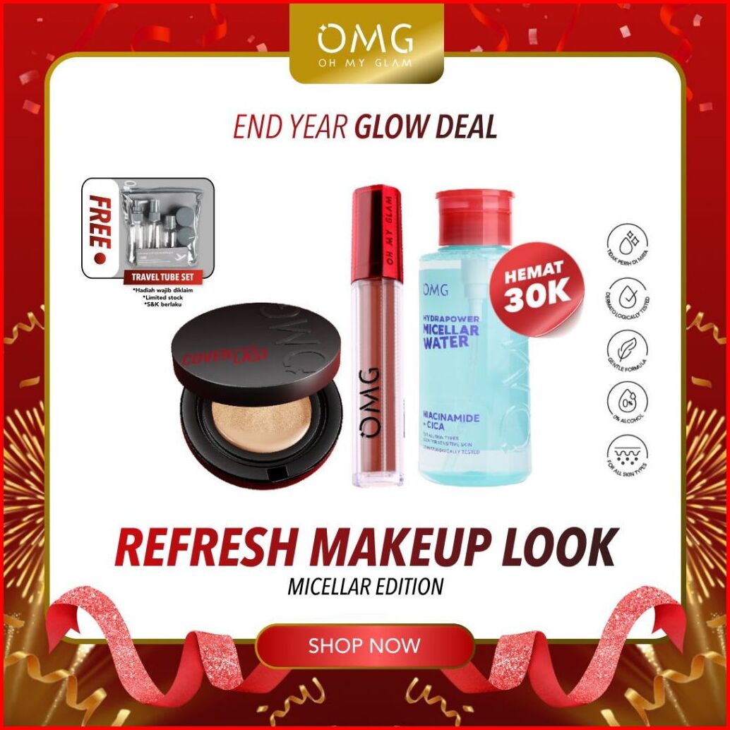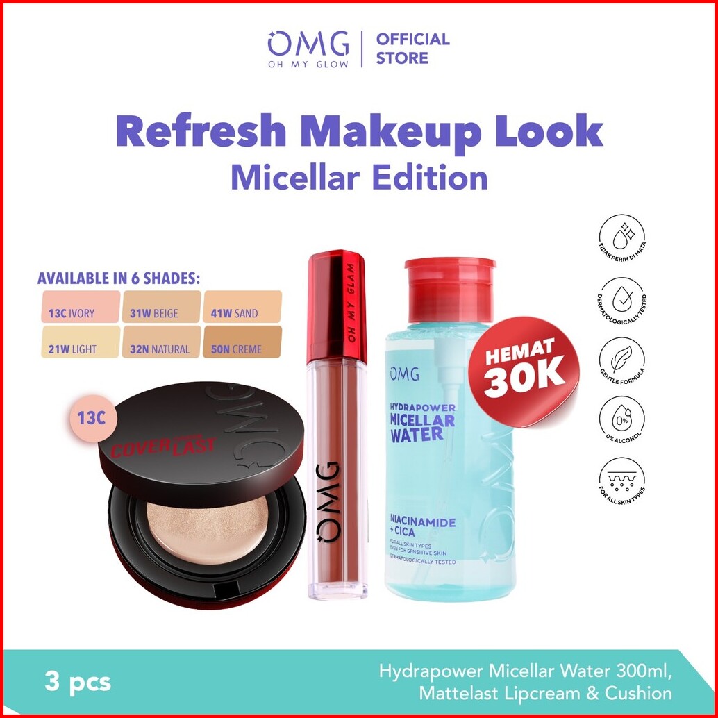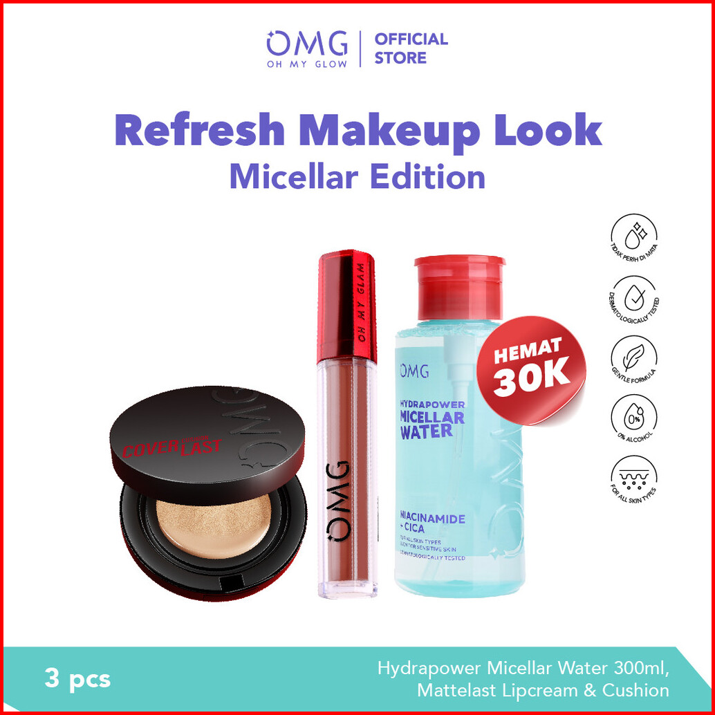 Omg Oh My Glam Refresh Look Micellar Edition Micellar Water Cushion Mattelast Lip Cream - High Coverage Tahan Lama Mence