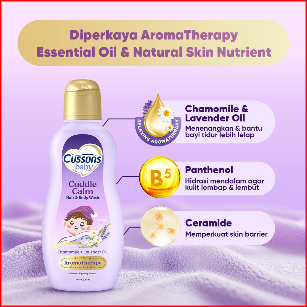 Cussons Baby Cuddle Calm Hair Body Wash 200mlx3 - Chamomile Lavender Oil Sabun Bayi 2in1 Bantu Bayi Rileks Anteng