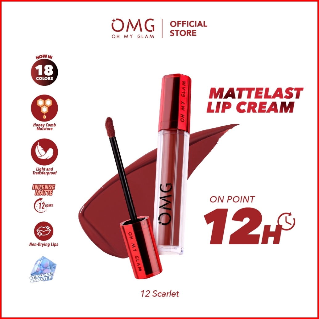 Omg Oh My Glam Mattelast Lip Cream 12 Scarlet 2.9 G - Lip Cream Matte Dengan Warna Intense Tahan Lama Ringan