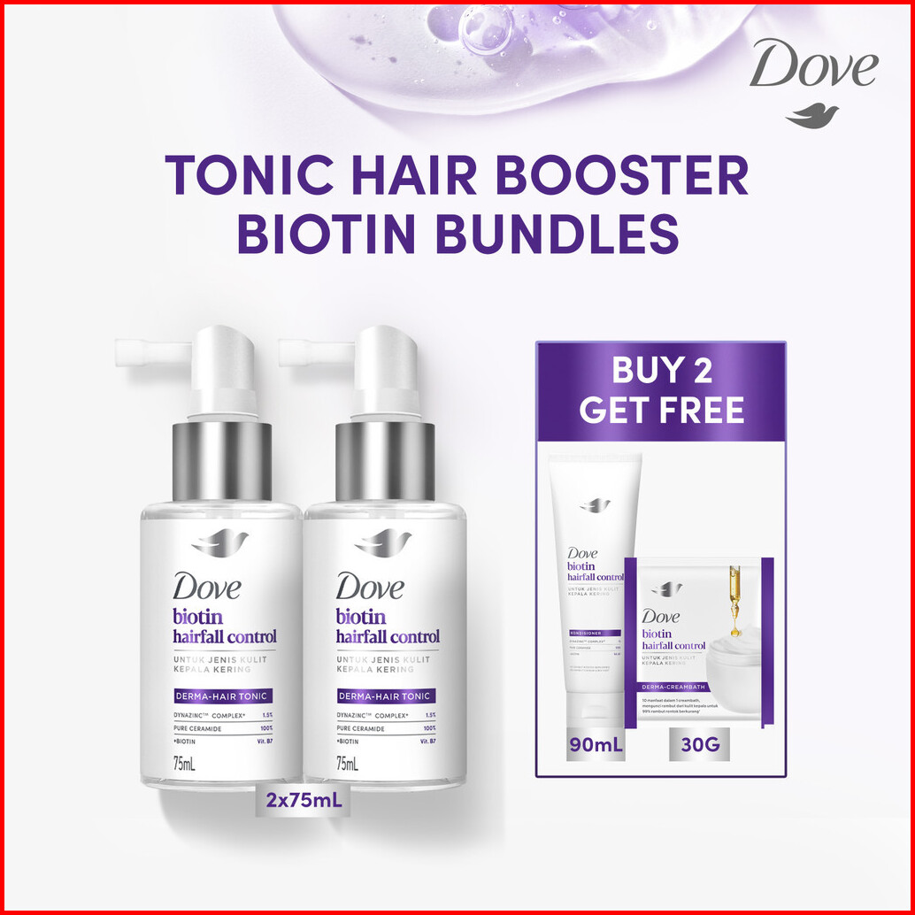 Paket Tonic Hair Booster Biotin Dove Hair Care Biotin Tonic 75ml X2 Gratis Conditioner 90ml Creambath 30gr