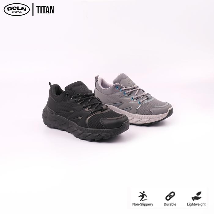 Declan Sepatu Sneakers Pria Titan 01-097 Black Karet PU Mewah Nyaman Non Slip Sole Sporty