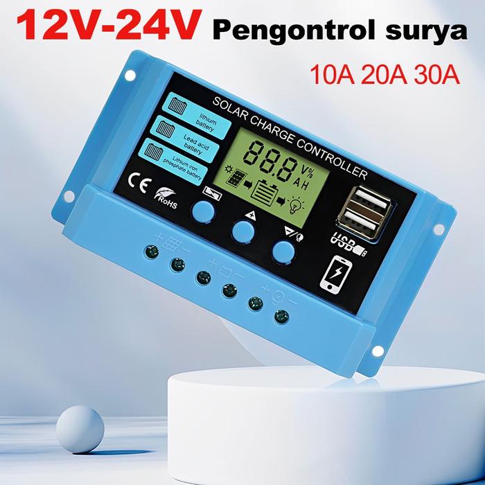 Pengontrol Pengisi Daya Surya Tampilan LED LCD PWM Surya 12V/24V 10A 20A 30A Panel USB Pengisi Daya Surya - 10A