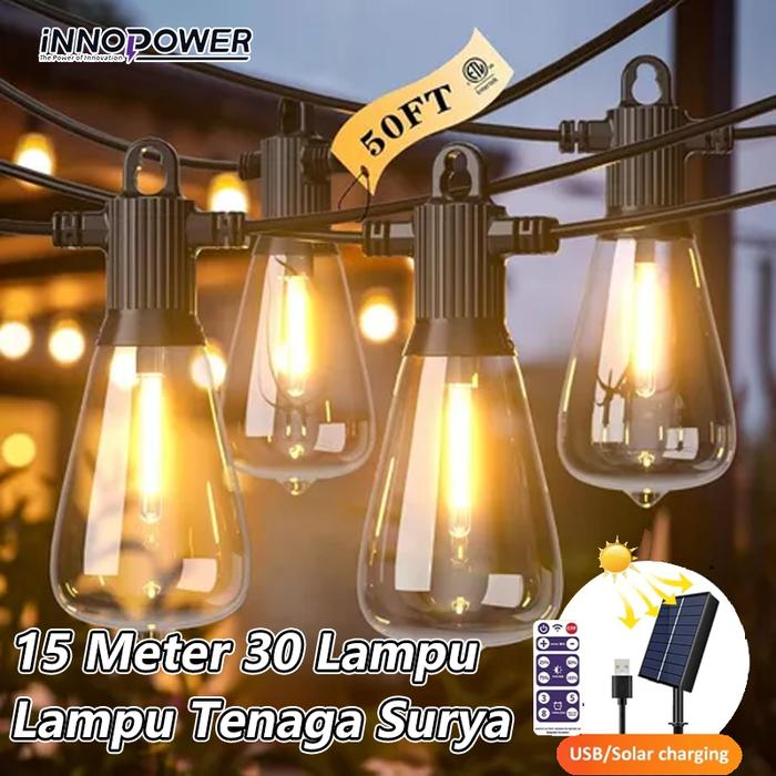 15 Meter 30 Kuning Lampu Adjust Kecerahan Tenaga Surya Charger Lampu Gantung Outdoor LED - 15Meter 30 Bohlam
