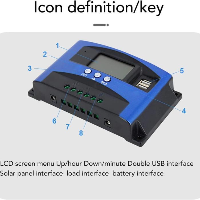Solar Charger Controller LCD Display Solar Cell MPPT 50A 12V 24V Charger AUTO Dual USB - 50A