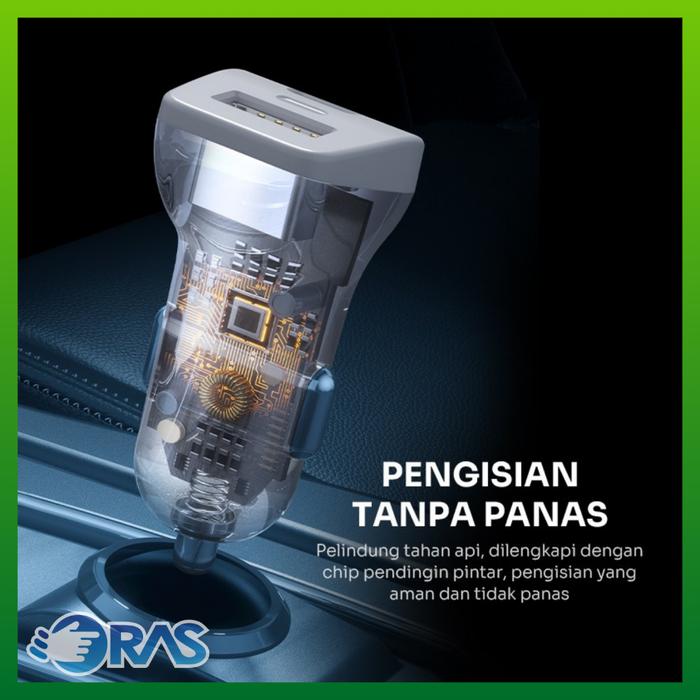 Car Charger Mobil Motor USB Power Delivery Type C Fast Charging PD 2.4A 2 Output Port Robot C09