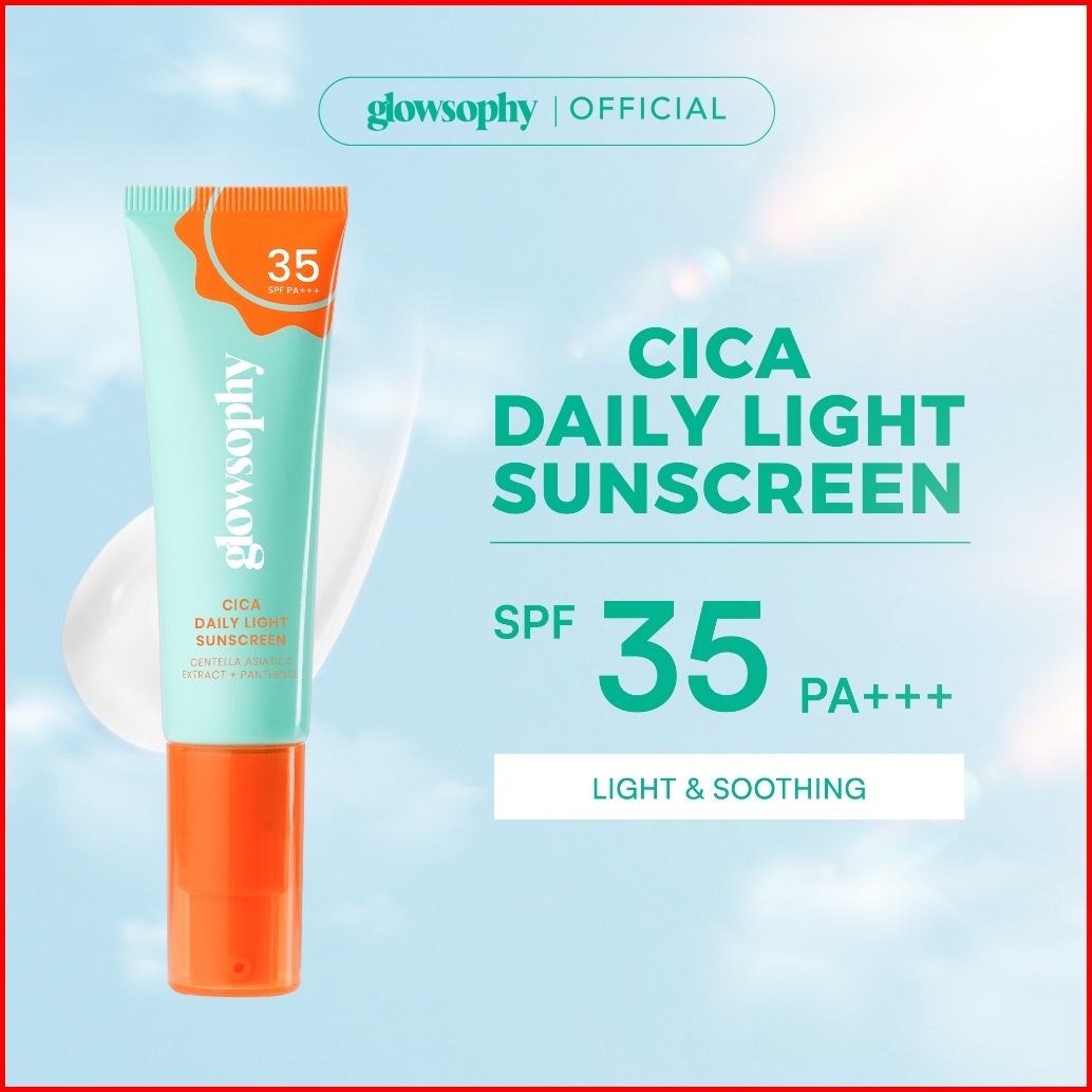Glowsophy Cica Daily Light Sunscreen Spf 35 Pa Light Soothing Sunblock Wajah Pelembab Skin Membantu Menenangkan Kulit Be
