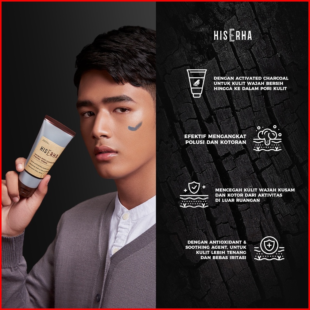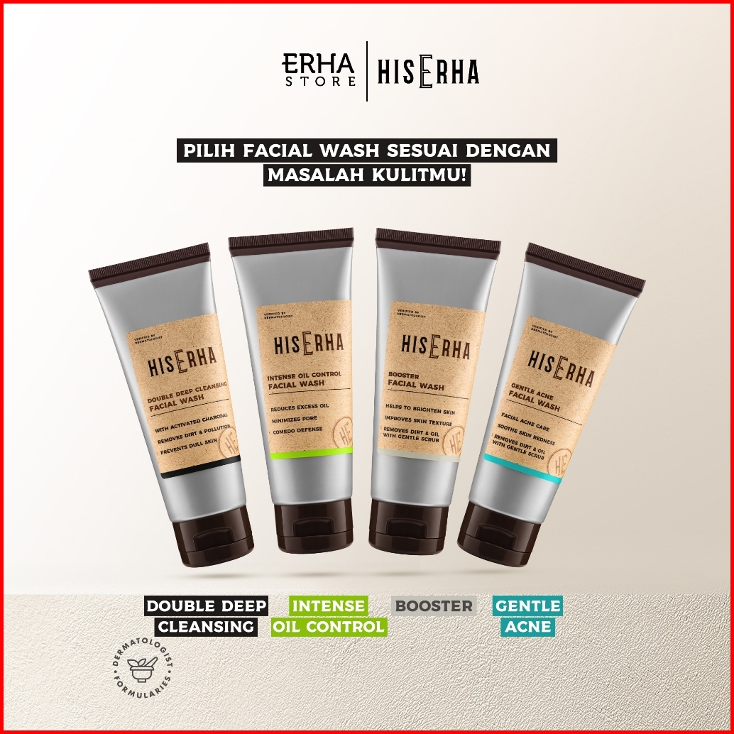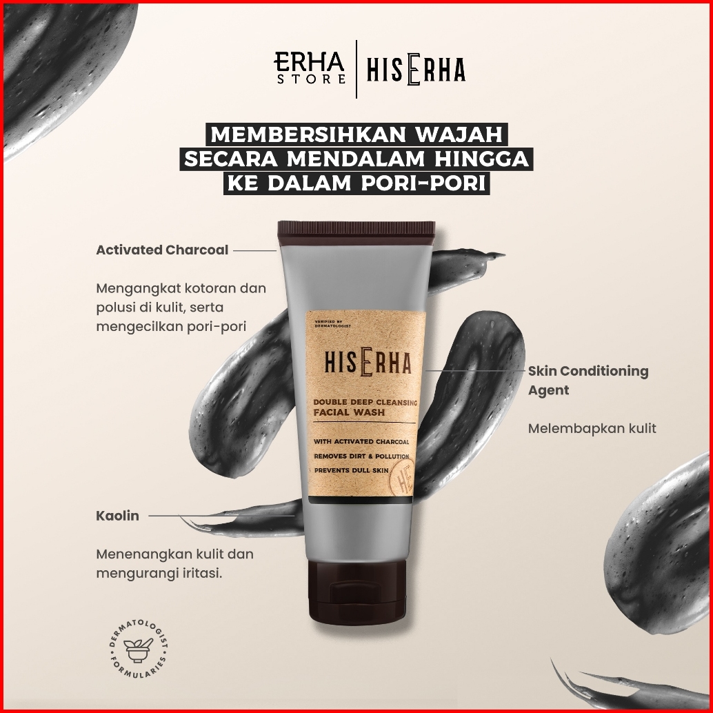 His Erha Double Deep Cleansing Facial Wash 100gr - Sabun Cuci Muka Pria Untuk Membersihkan Wajah Secara Mendalam Angkat