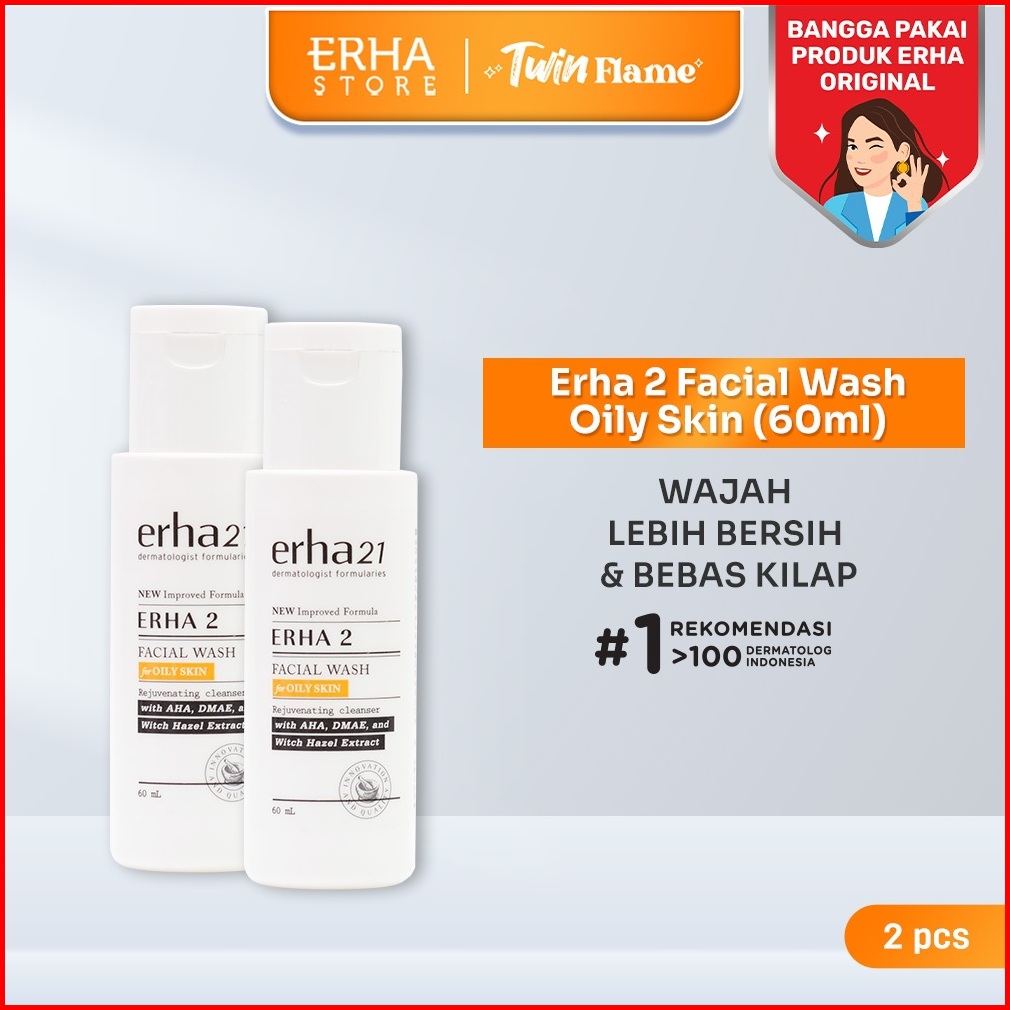 Erha Twin Flame Erha 2 Facial Wash For Oily Skin 60 Ml - Sabun Wajah Kulit Berminyak