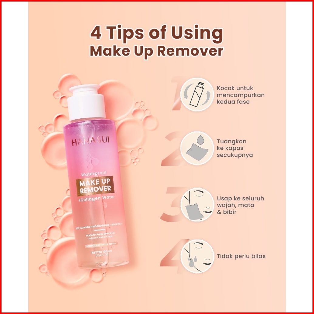 Hanasui Waterproof Make Up Remover Collagen Water - Membersihkan Melembapkan Mencerahkan Menghapus Makeup